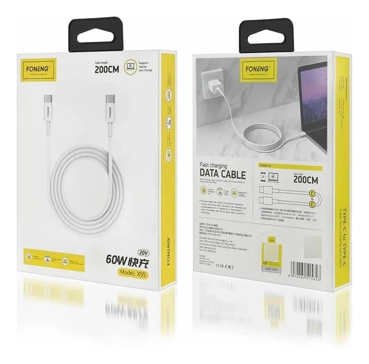 Câble de charge rapide X55 Type-C vers Type-C 60 W (2 mètres)