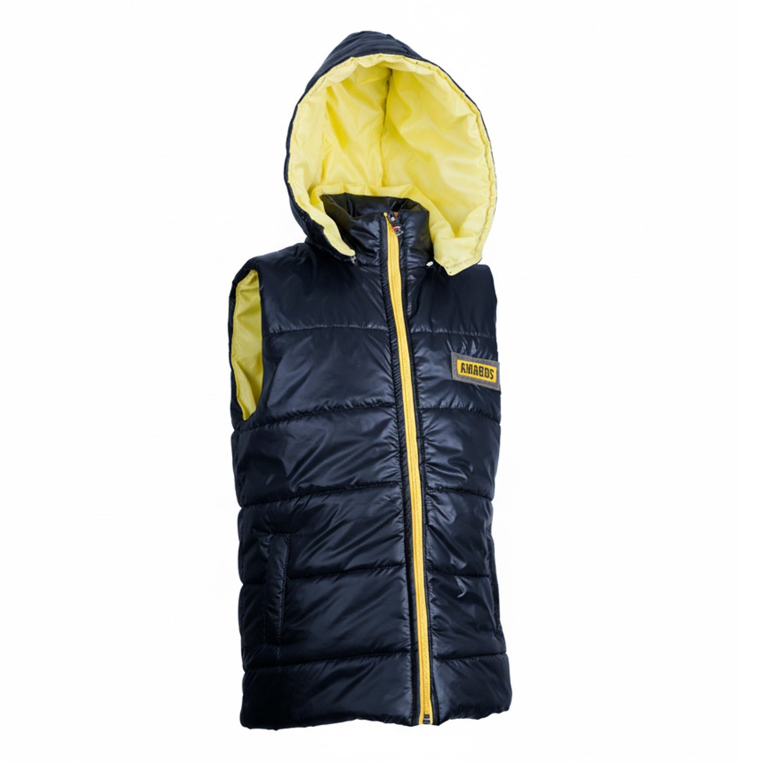 Doudoune à capuche sans manches Noir avec Jaune Garçon