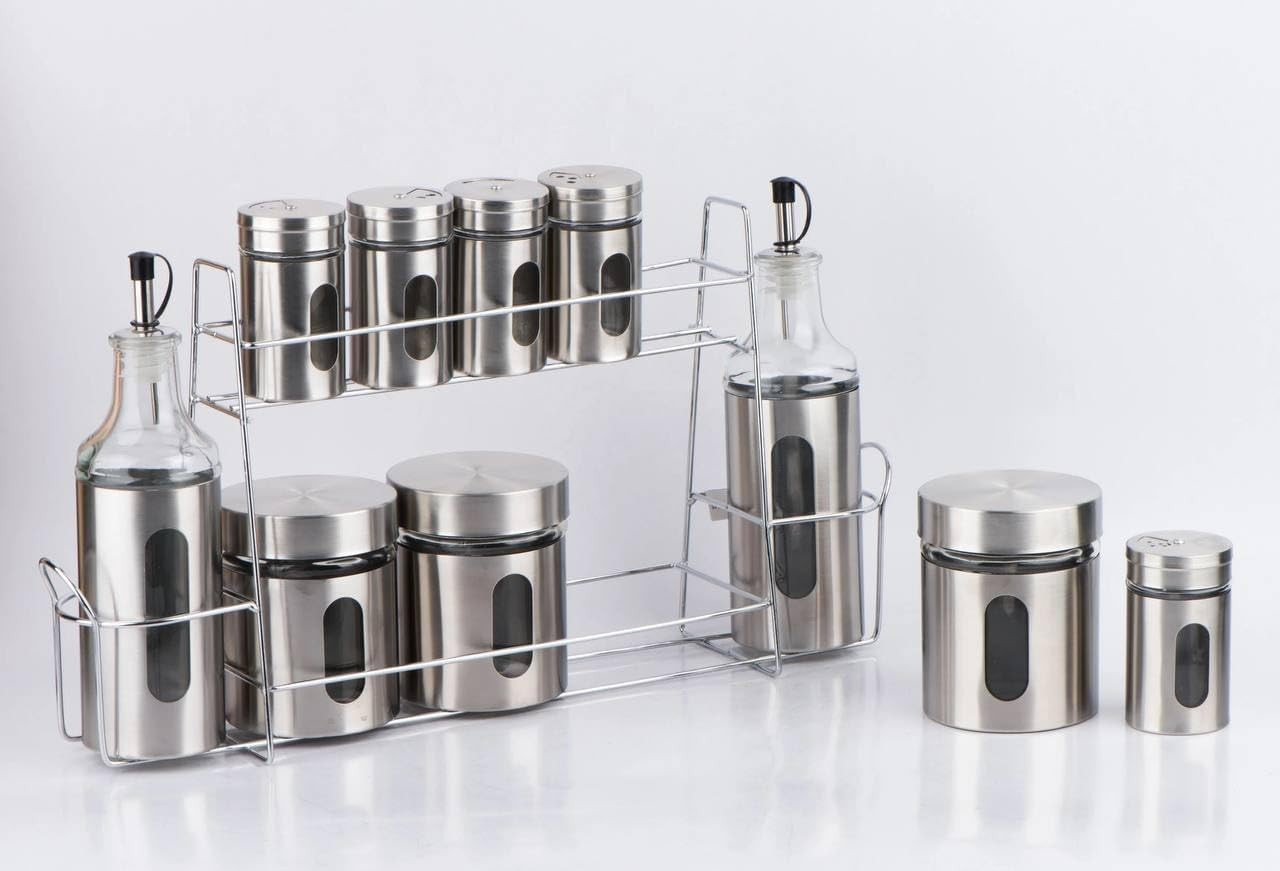 | Caractéristiques spéciales | Support en acier, bocaux en verre |