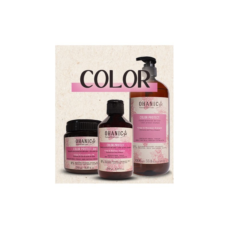 Mask OHANIC Color Protect  1000 ml Le masque Color Protect contient de l’extrait de raisin et de l’huile d’olive, qui nous aide à hydrater et à protéger la couleur des cheveux teints ou méchés.