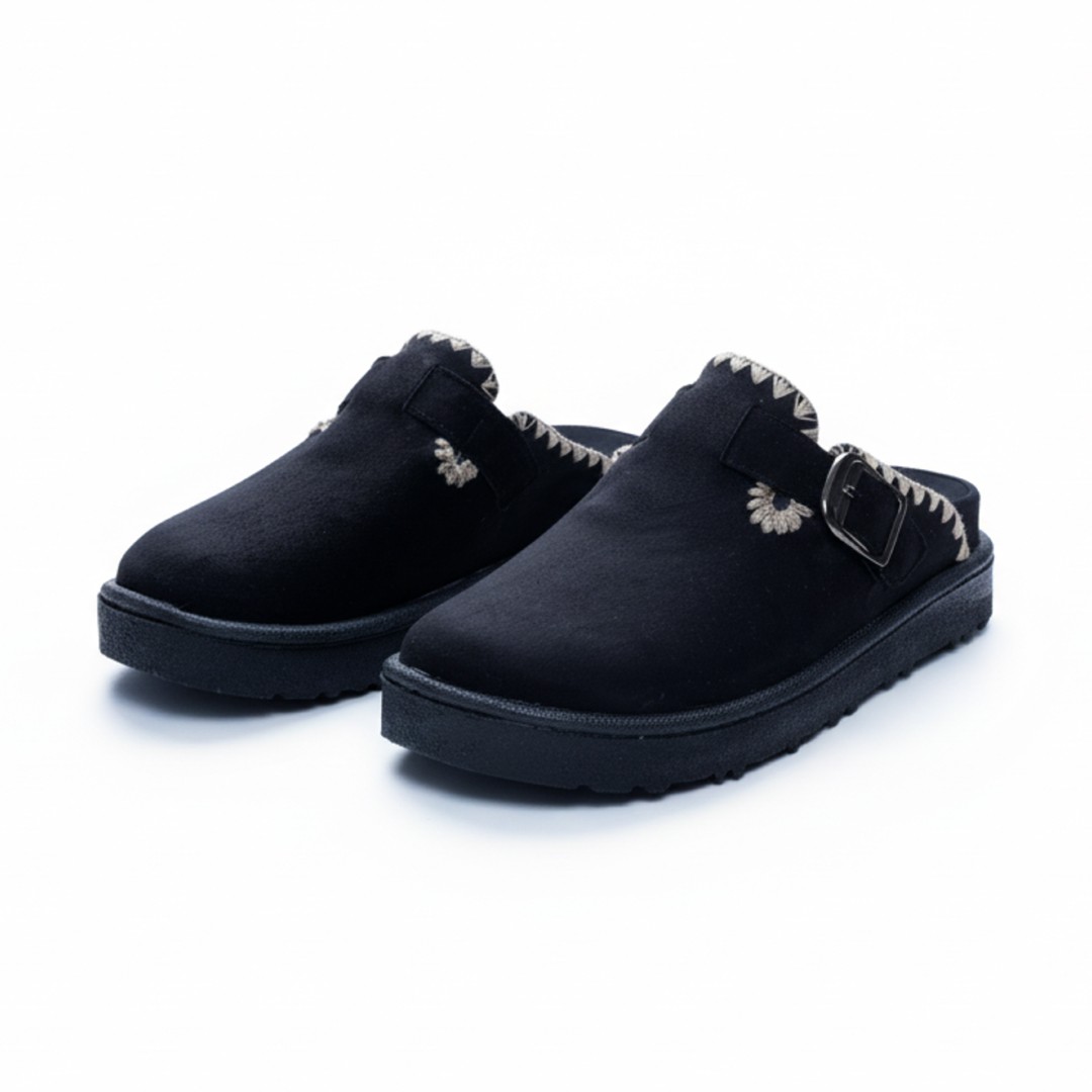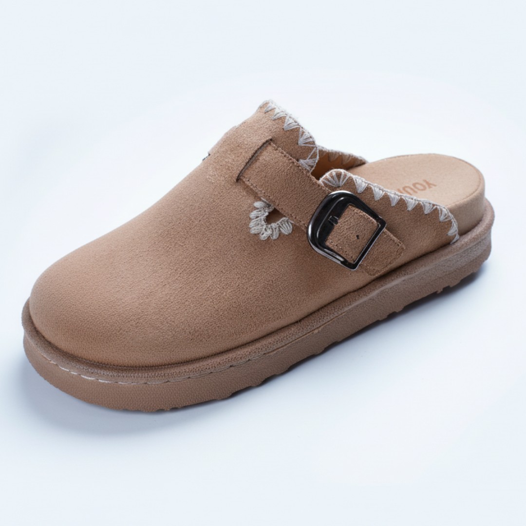 Mule Femme en Daim Avec Boucle  Réglable Inoxydable Super Tendances cette Saison.