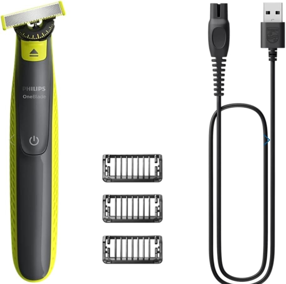 • ACCESSOIRES: Livré avec un câble de charge USB, trois sabots de coupe et une lame OneBlade remplaçable