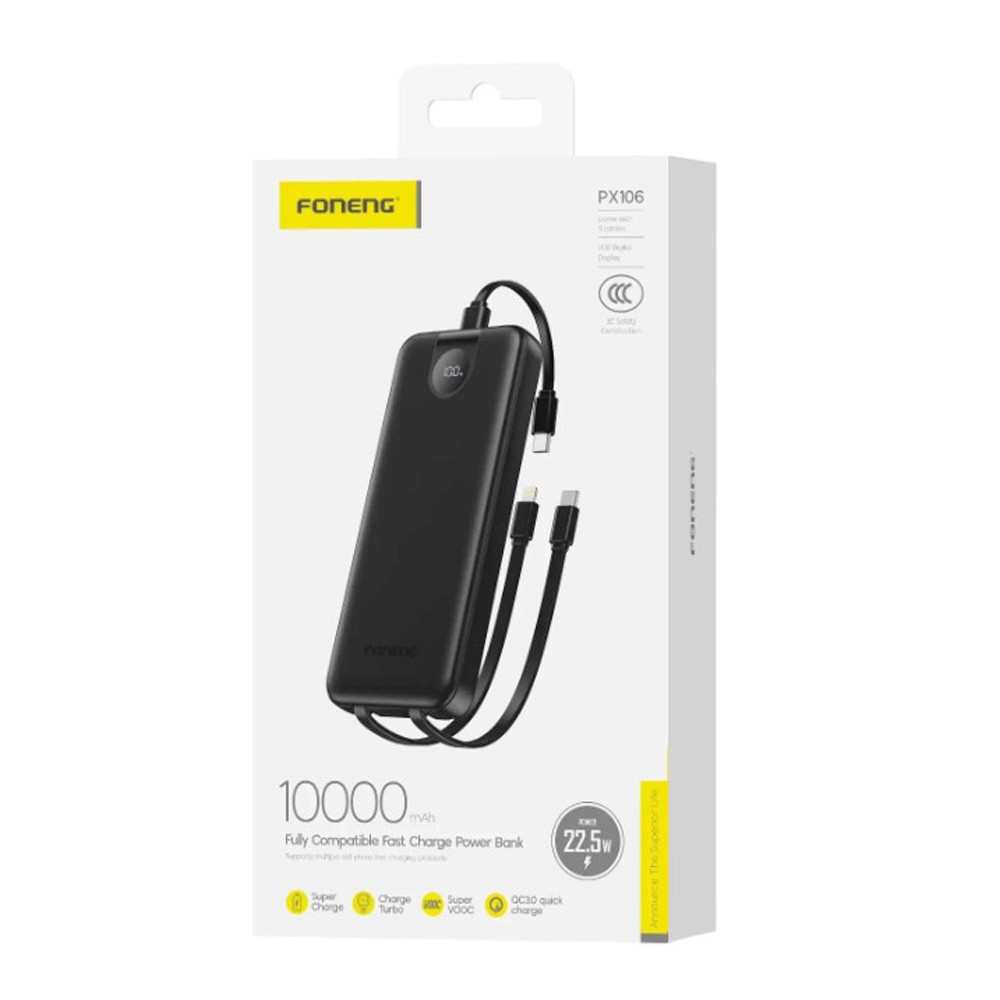 Power Bank PX106 10 000 mAh avec 3 câbles intégrés (22,5 W)