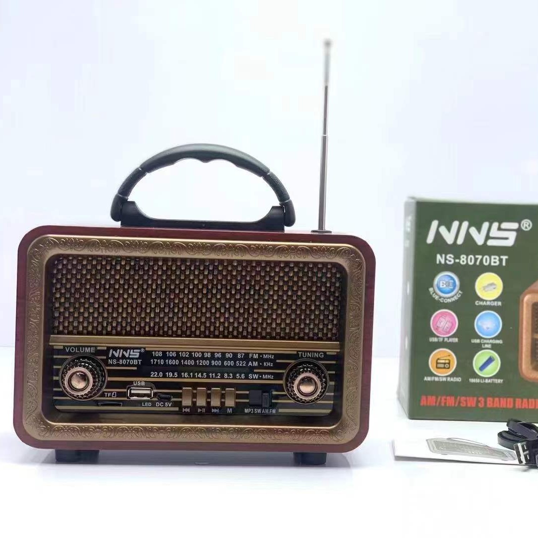 Radio FM rétro en bois NS-8070BT, haut-parleur Bluetooth portable multifonction