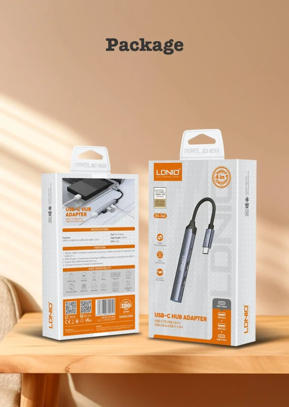 Station d'accueil pour ordinateur portable LDNIO DS-34C, mini-convertisseur 4-en-1 USB-C, compacte et facile à transporter